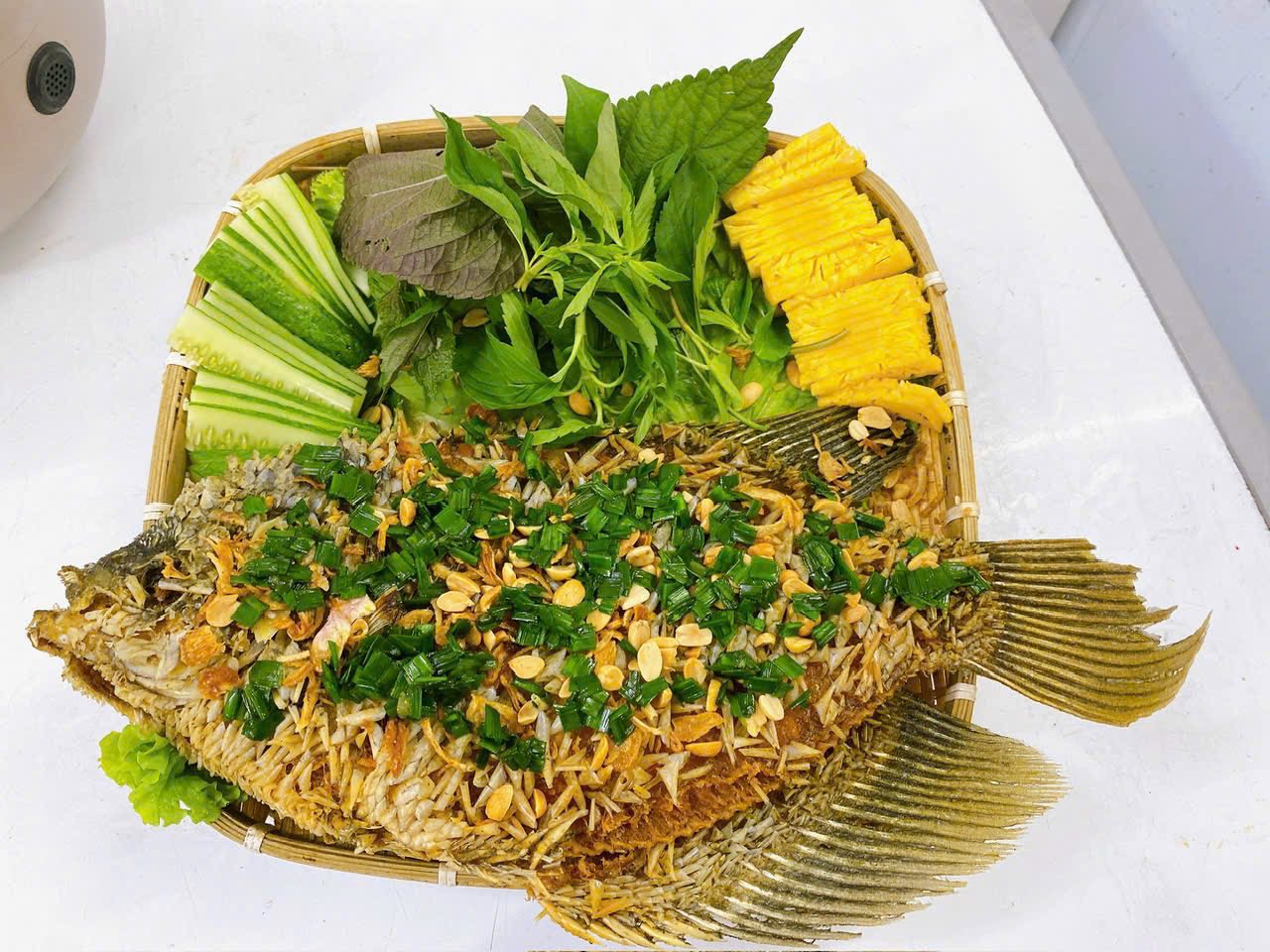 Trải nghiệm thưởng thức món ăn này là một “nghi thức” đầy thú vị. Bạn lấy một miếng bánh tráng mỏng, đặt lên đó vài lá rau sống xanh mướt, một lát chuối chát, khế chua rồi gỡ miếng thịt cá thơm lừng còn bốc khói. Cuộn tròn tất cả lại và chấm ngập vào bát mắm nêm đậm đà, vị cay nồng của ớt, vị thơm của thơm (dứa) hòa quyện cùng độ giòn rụm của vảy cá tạo nên một cảm giác bùng nổ ngay đầu lưỡi. Cá tai tượng chiên xù không chỉ là một món ăn, mà còn là biểu tượng của sự hiếu khách và nét văn hóa ẩm thực mộc mạc nhưng đầy tinh tế của người dân phương Nam.